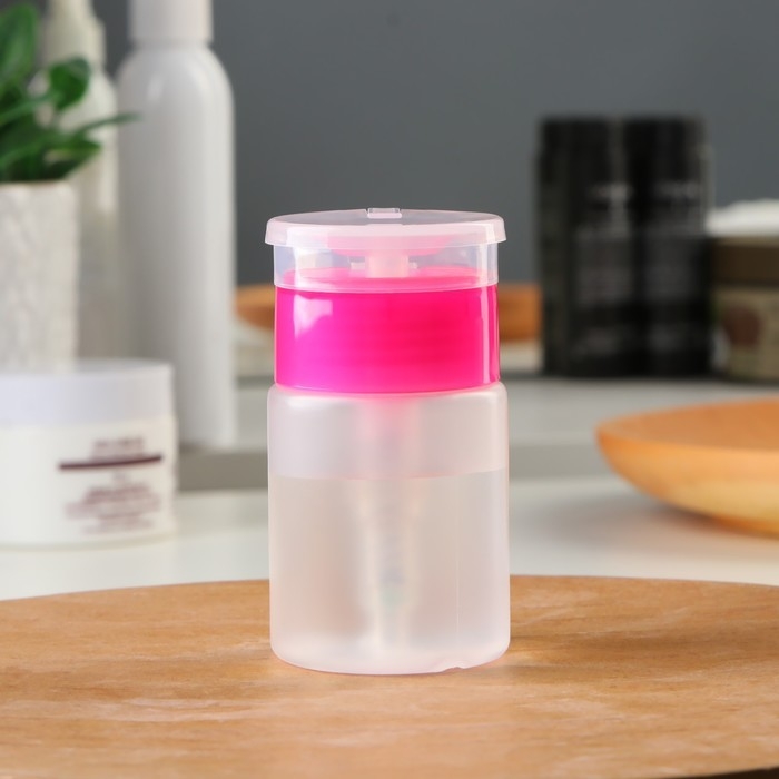 В данной баночке удобно хранить средство для снятия лака, лосьон для лица и другие косметические составы: они не выветрятся и не вытекут. Ёмкостью очень легко пользоваться: просто положите сверху ватный диск и нажмите на помпу, чтобы он пропитался содержимым. Такая система уменьшает расход материала и делает процедуру быстрее и приятнее.