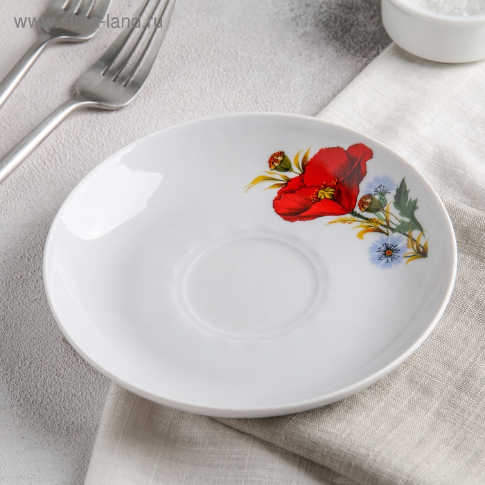 Блюдце фарфоровое «Маки красные», d=15 см, цвет белый