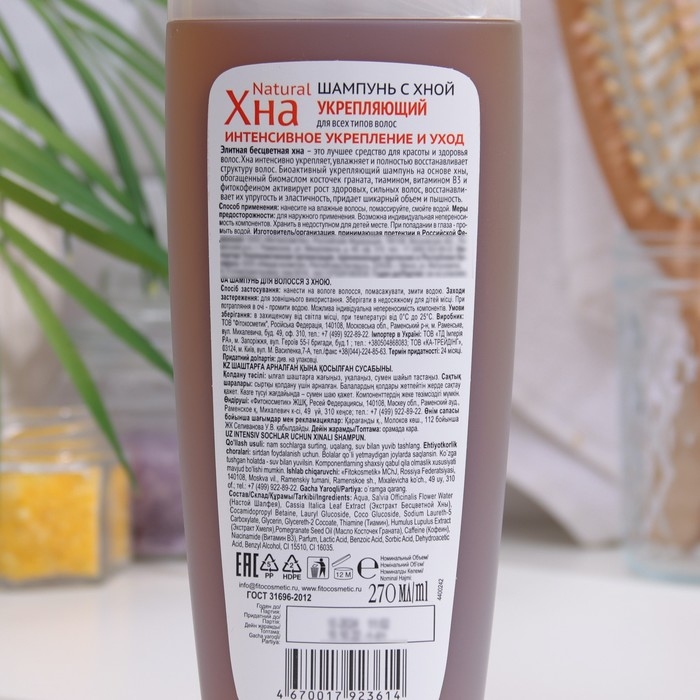 Шампунь для волос Хна Natural«Интенсивное укрепление и уход», укрепляющий, 270 мл