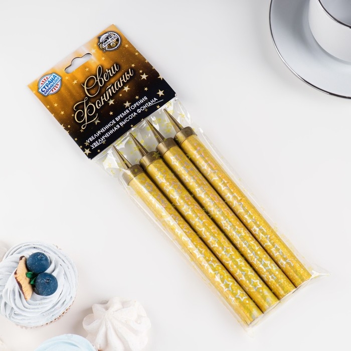 Свечи фонтаны для торта "Золотые искры", 10 см, 30 секунд, 4 шт