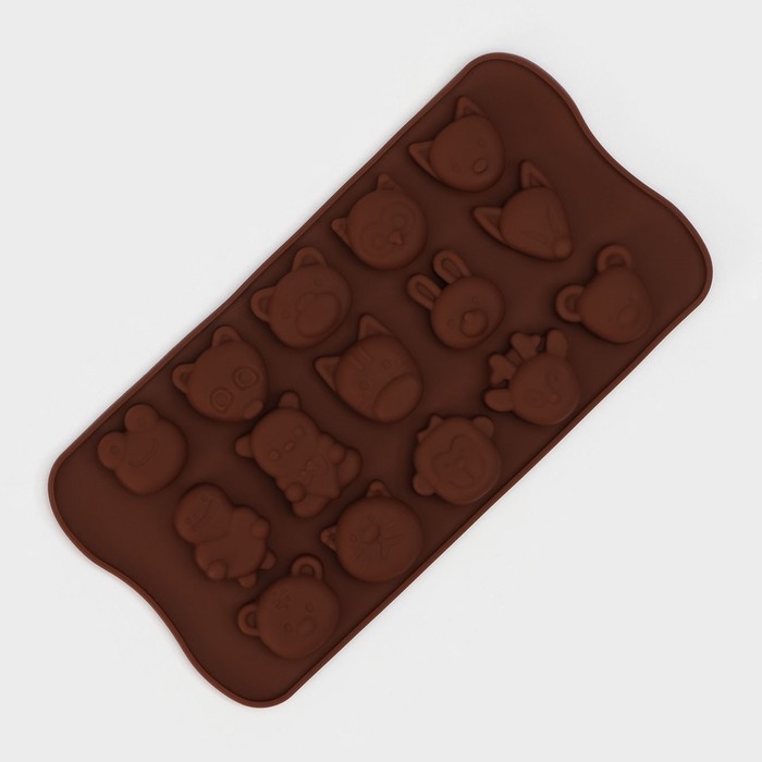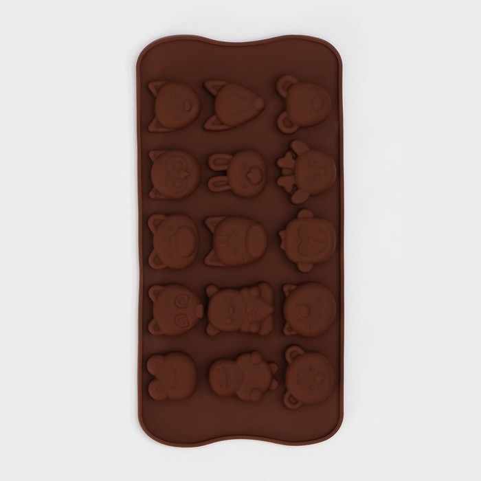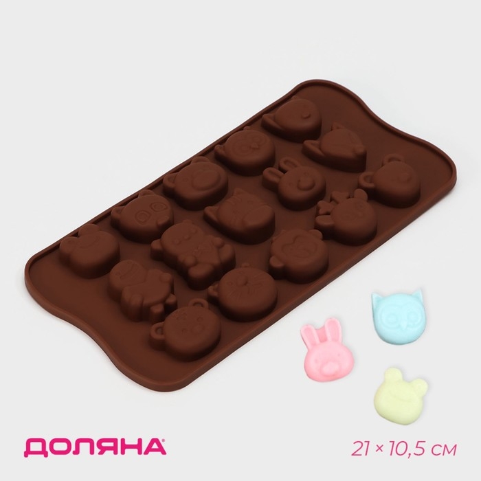 Форма для конфет и шоколада Доляна «Мордашки», силикон, 21×10,5 см, 15 ячеек (2,5×2,3 см), цвет МИКС