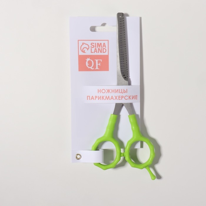 Ножницы филировочные с упором, лезвие 7 см, цвет салатовый/серебристый