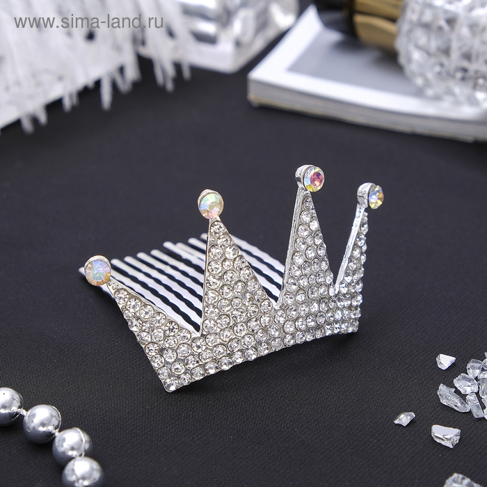 Диадема для волос "Королевская особа" стразы, 3,5х7,5 см, серебро