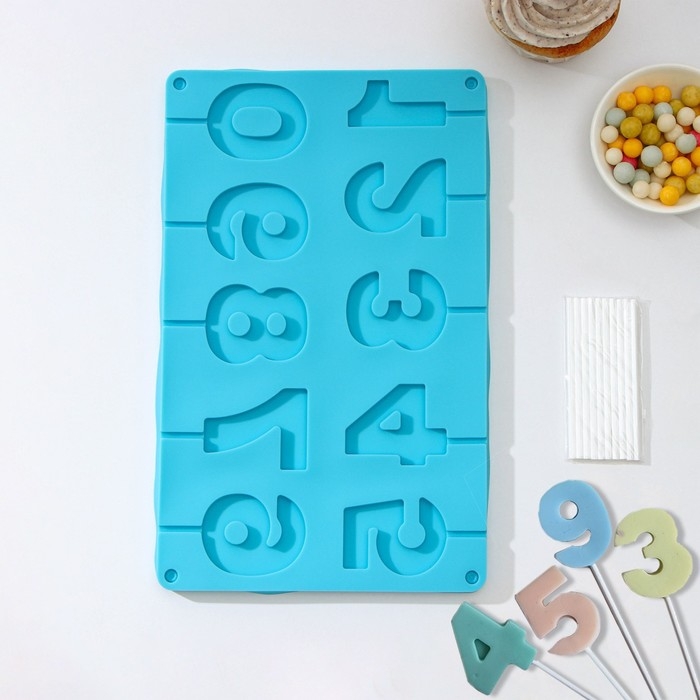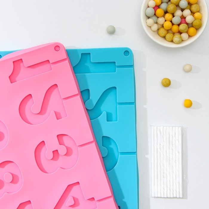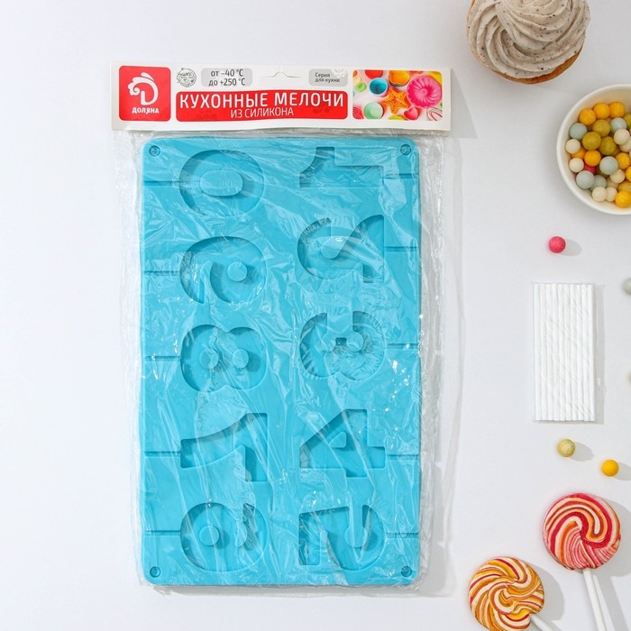 Форма для леденцов Доляна «Арифметика», силикон, 29×17 см, 10 ячеек (5×4 см), с палочками, цвет МИКС