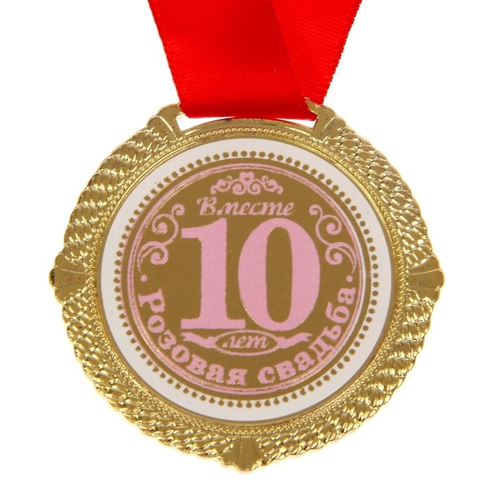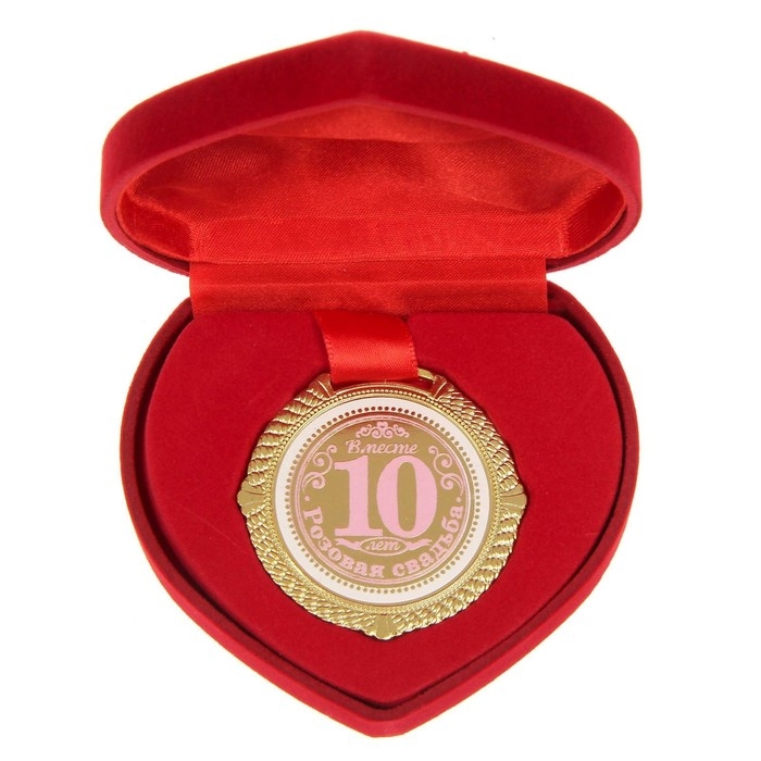 Медаль свадебная в бархатной коробке «Розовая свадьба. 10 лет вместе», d= 5 см