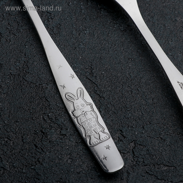 Вилка детская столовая «Антошка», длина 17,5 см, толщина 2 мм, цвет серебряный