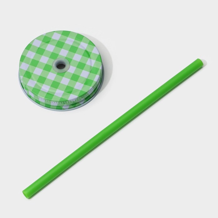 Кружка стеклянная с крышкой и трубочкой Доляна «Галерея», 500 мл, 11×8×13,5 см, цвет МИКС