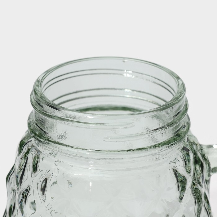 Банка с ручкой оснащена удобной ручкой и крышкой, она завоевала уважение тех, кто обожает здоровое питание. В оригинальной кружке можно даже готовить полезные завтраки, например, гранолу с йогуртом. Часто используется в барах для подачи коктейлей и лимонадов.