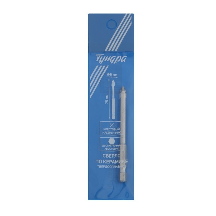 Сверло по керамике твердосплавное ТУНДРА, крестовый наконечник, шестигр. хвостовик, 6 мм