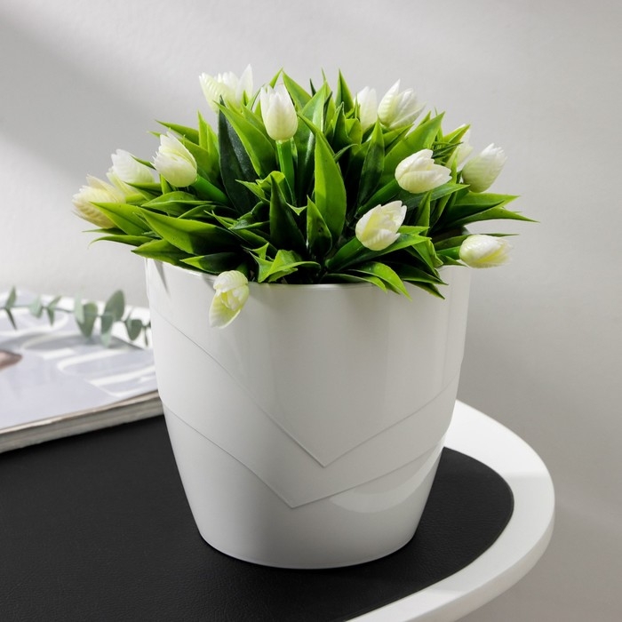 Кашпо для цветов со вставкой «Грация», 2 л, цвет белый