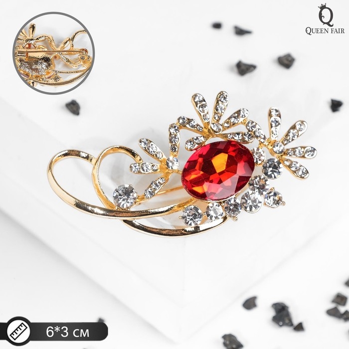 Брошь «Императрица» лакшери, цвет красно-белый в золоте