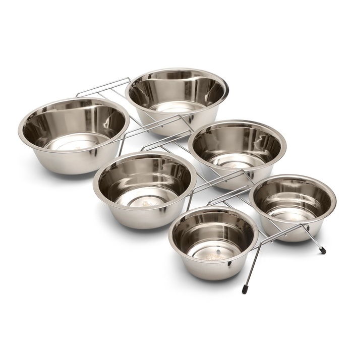 Подставка обеспечивает устойчивость мисок, а прорезиненные ножки предотвращают их смещение во время приема пищи.