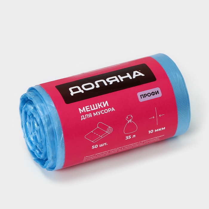 Мешки для мусора «Профи», 35 л, 10 мкм, 45×65 см, ПНД, 50 шт, цвет синий, МИКС