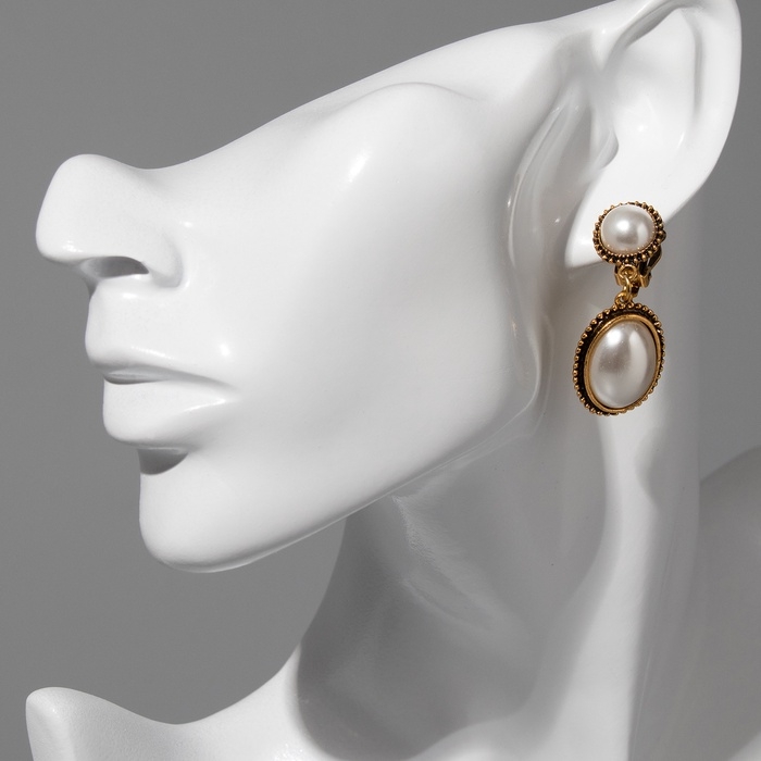 Клипсы «Ажур» капли с завитками, цвет белый в золоте