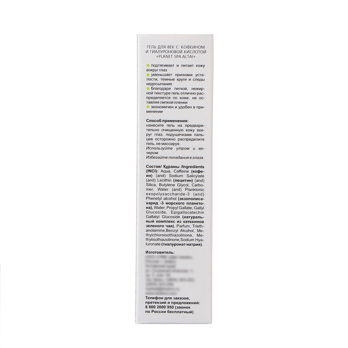 Гель для век Planet SPA Altai с кофеином и гиалуроновой кислотой, 25 мл