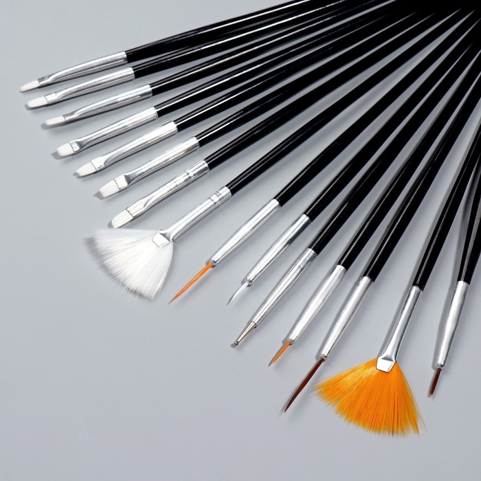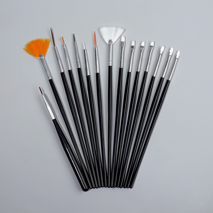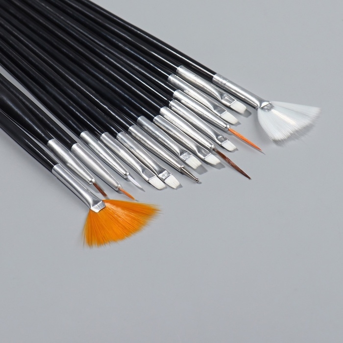 Набор кистей для наращивания и дизайна ногтей, 15 шт, цвет чёрный