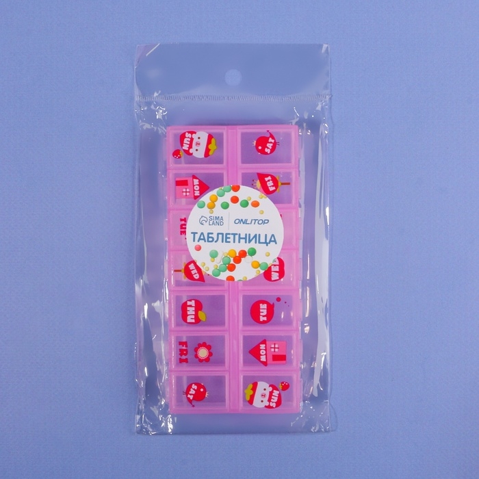 Таблетница «Картинки», 13 × 6 × 2 см, 14 секций, цвет МИКС