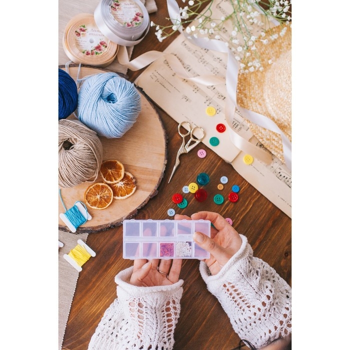 Органайзер для декора, 10 отделений, 13,5 × 6,5 × 2 см, цвет прозрачный