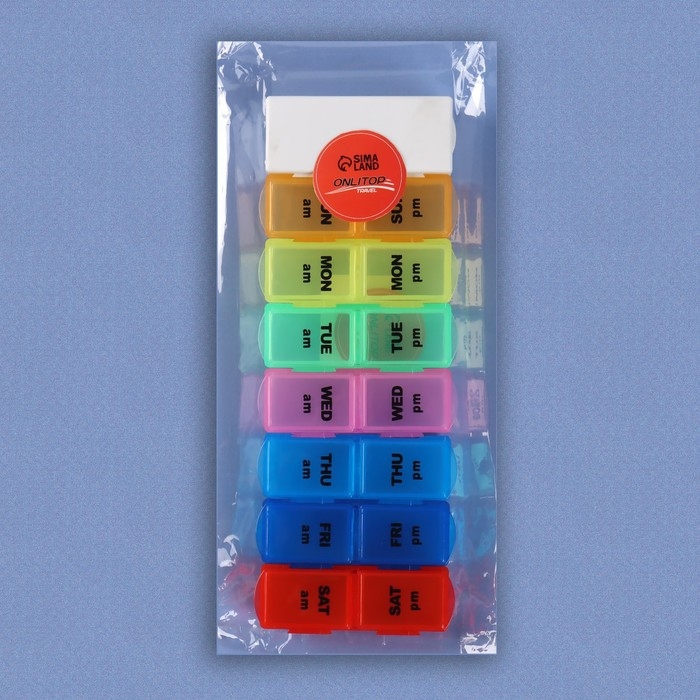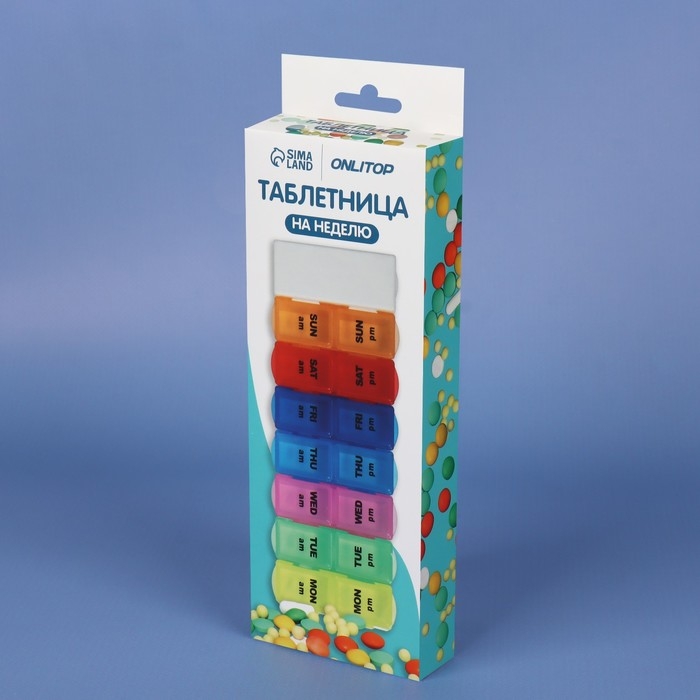 Таблетница - органайзер «Неделька», утро/день/вечер, 21,5 × 9 × 2 см, 21 секция, в коробке, разноцветная