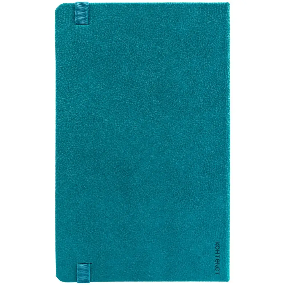 Ежедневник с твердой обложкой, выполнен из материала LaFite, цвет морской волны II, дополнен резинкой и ляссе в цвет обложки.