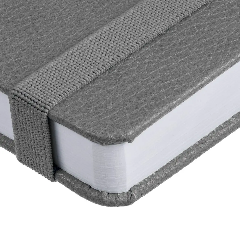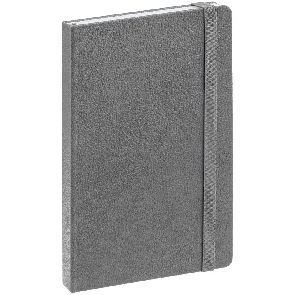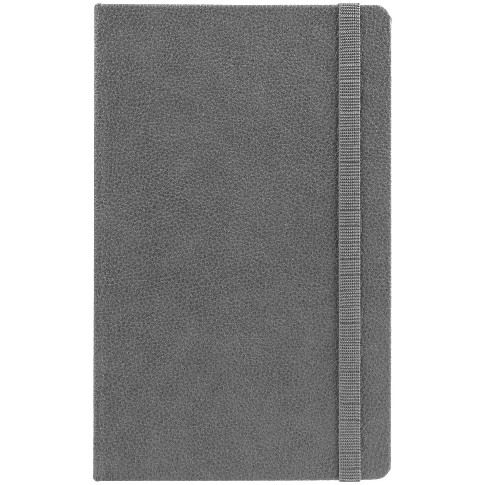 Ежедневник с твердой обложкой, выполнен из материала LaFite, серый СС, дополнен резинкой и ляссе в цвет обложки.