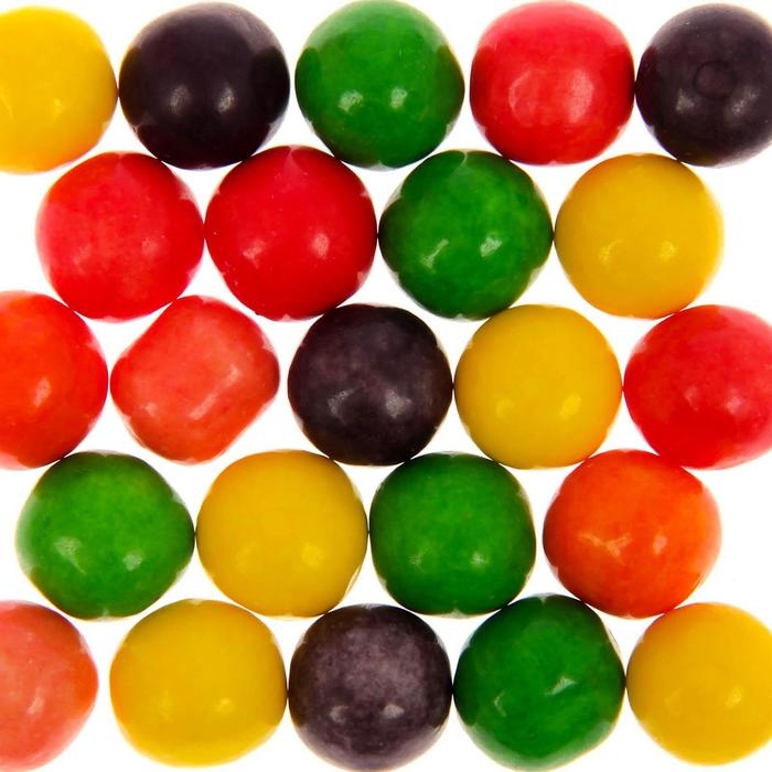 Состав: сахар, основа полимерная, патока, влагоудерживающий агент (глицерин пищевой), регулятор кислотности (кислота лимонная), ароматизаторы ("Тутти-фрутти", "Лимон", "Яблоко", "Апельсин", "Клубника", "Вишня"), эмульгатор (соевый лецитин), красители пищевые (Тартразин Е102, Диоксид титана Е171, Солнечный заказ FCF Е110, Кармуазин Е122, Красный очаровательный АС Е129, Синий блестящий FCF Е133), глазирователь (воск карнаубский).