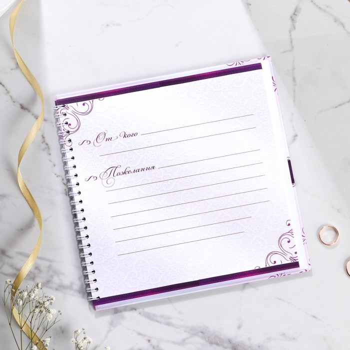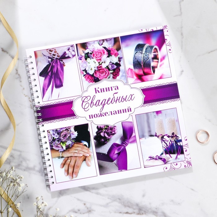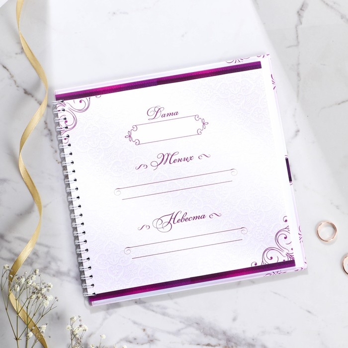 Книга пожеланий на свадьбу «Пурпурная свадьба», на пружине.