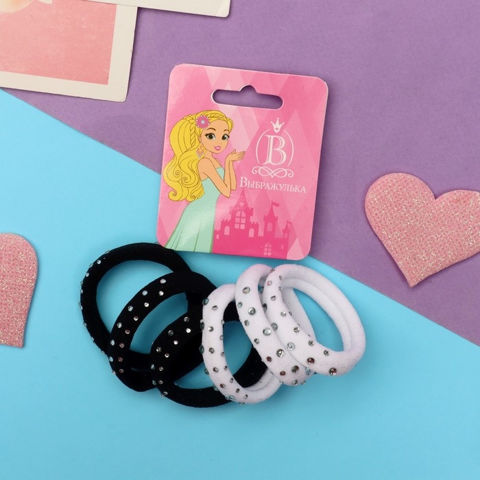 Резинка для волос "Блеск" (набор 6 шт) стразинки, чёрный белый