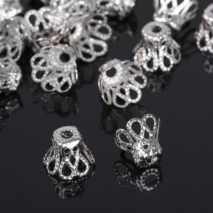 Шапочки для бусин (набор 50шт), СМ-091, 8×10 мм, цвет серебро