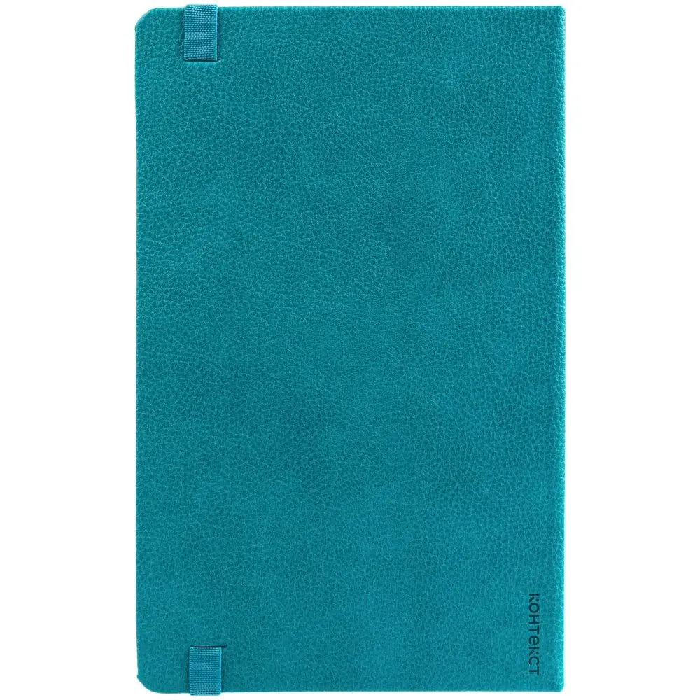 Ежедневник с твердой обложкой, выполнен из материала LaFite, цвет морской волны II, дополнен резинкой с металлическим прямоугольным шильдом и ляссе в цвет обложки.