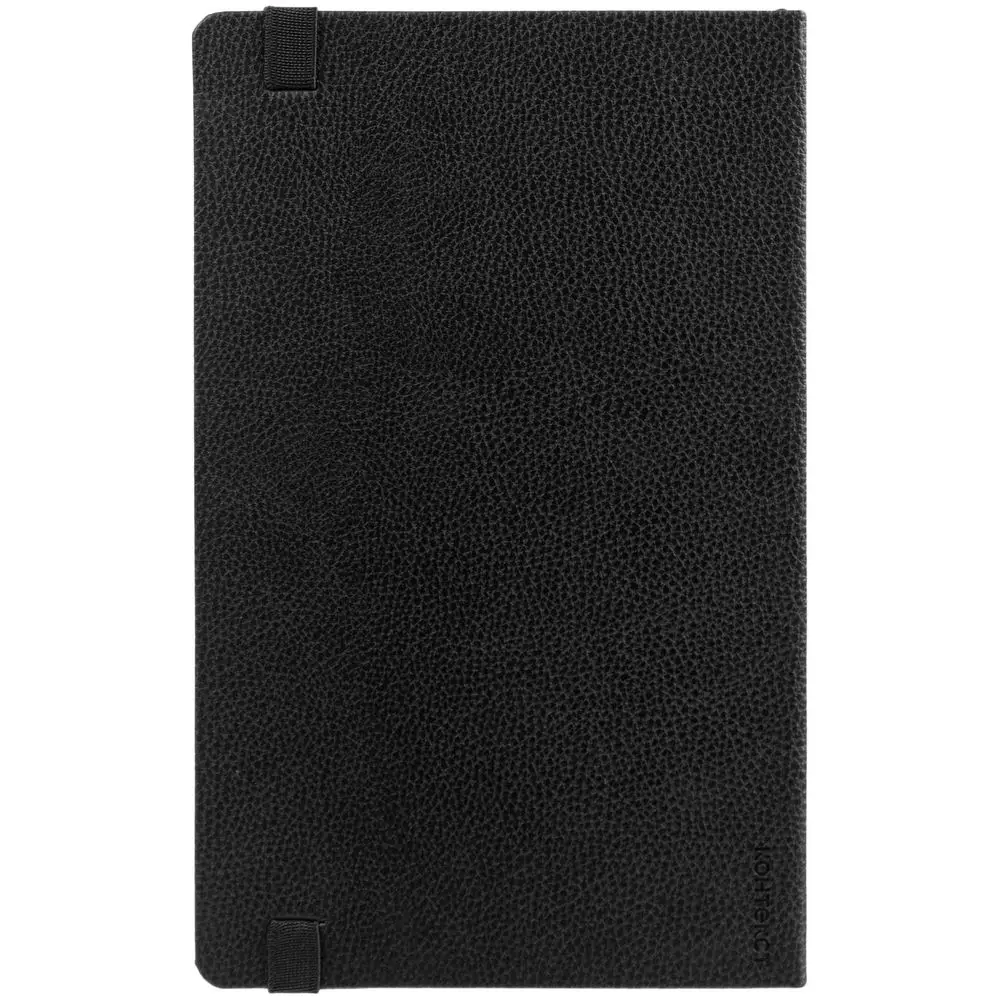 Ежедневник с твердой обложкой, выполнен из материала LaFite, черный АА, дополнен резинкой с металлическим прямоугольным шильдом и ляссе в цвет обложки.