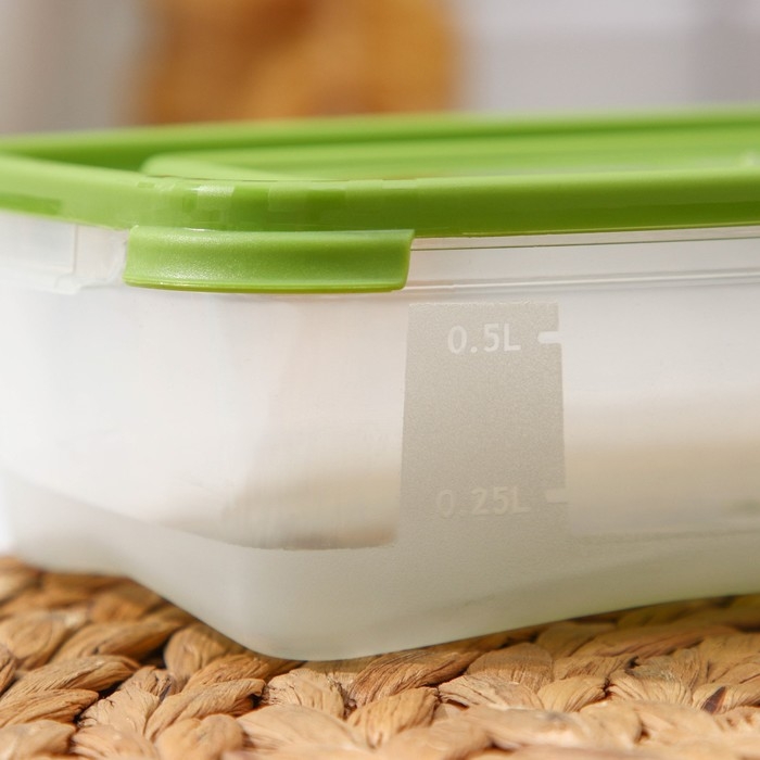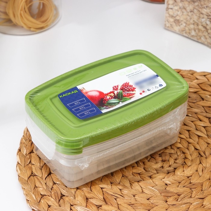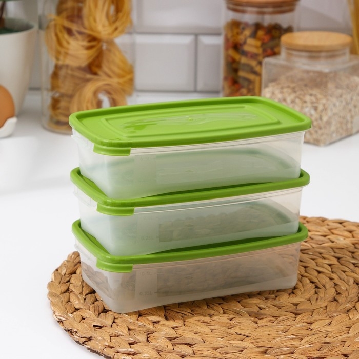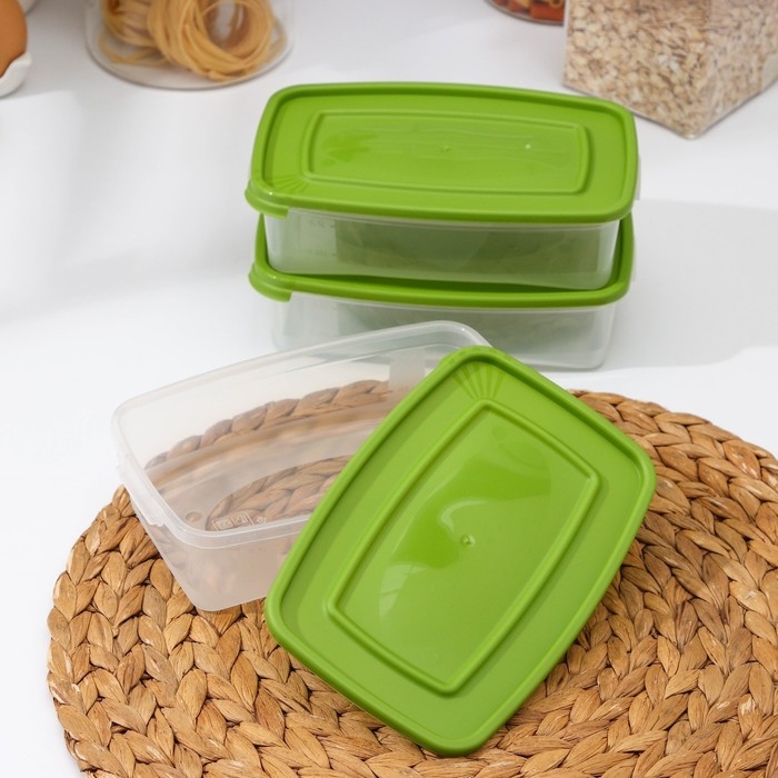 Набор контейнеров пищевых Доляна, 3 шт: 1 л, 18,5×12×7 см, прямоугольные, прозрачные, крышка зелёная