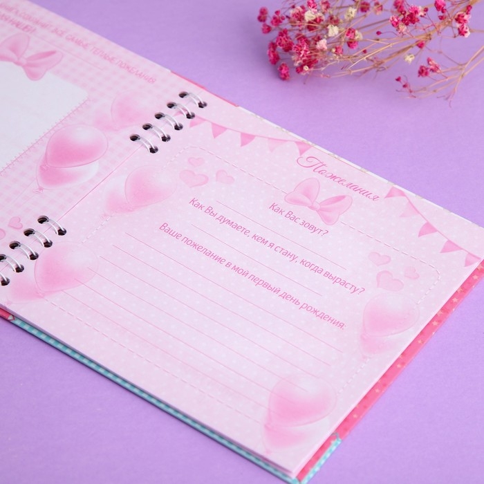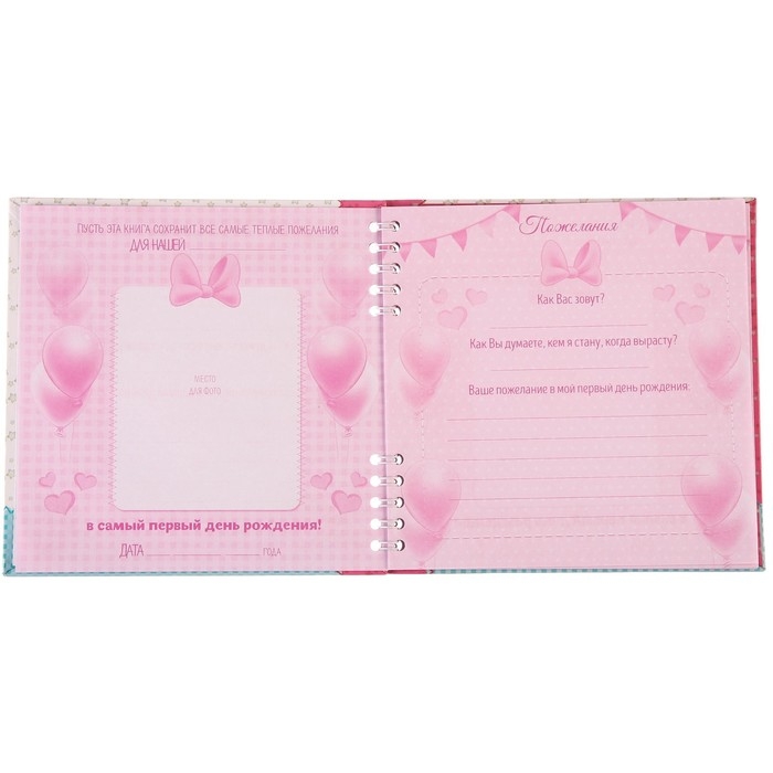 - Дорогие сердцу пожелания на день рождения, увы, часто хранятся на неудобных носителях, теряются или забываются. Чтобы сохранить прекрасные поздравления, мы разработали специальную «Книгу пожеланий». Перечитывая её годы спустя, вы вновь переживёте радужные моменты. Альбом состоит из 24 листов. Запишите на первой страничке дату рождения и имя владельца, а на остальных оставьте тёплые слова, которые будут долго согревать сердце именинника. Внутренние листы разлинованы и окаймлены рисунком в форме рамки.