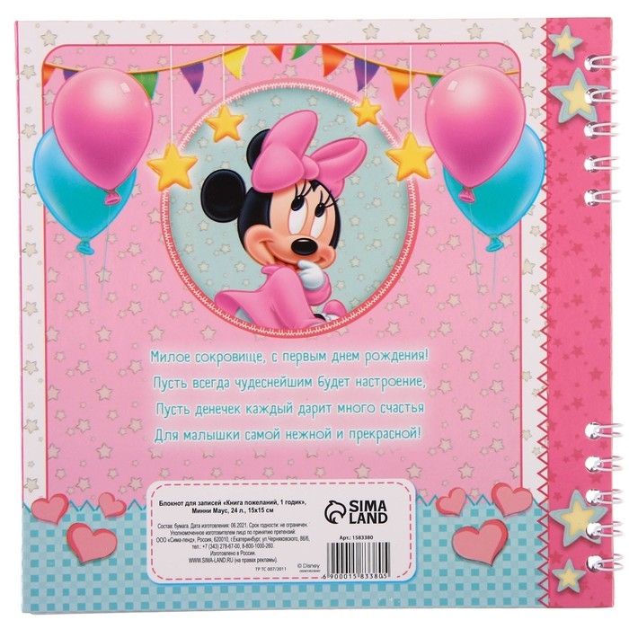 Книга пожеланий на 1 годик, Минни Маус, 24 листа