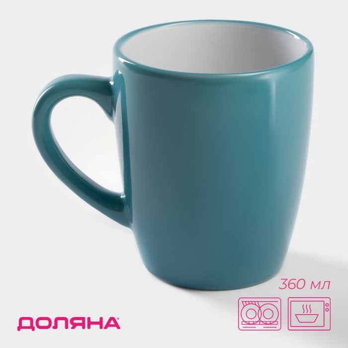 Кружка керамическая Доляна «Дымка», 360 мл, цвет бирюзовый