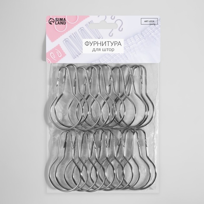Крючок для штор, 7 × 4 см, 20 шт, цвет серебряный