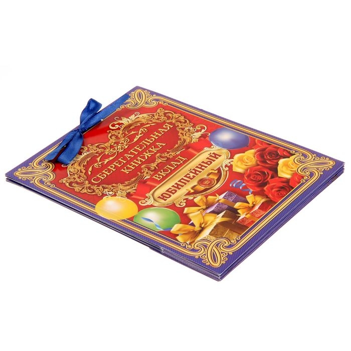 Дизайнерская открытка состоит из 5 листов, скреплённых лентой. На каждой странице с тёплыми пожеланиями располагается индивидуальный конверт. Положите внутрь банкноты — и мечты юбиляра станут явью.