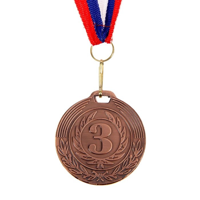 Медаль призовая 013, d= 5 см. 3 место, триколор. Цвет бронза. С лентой