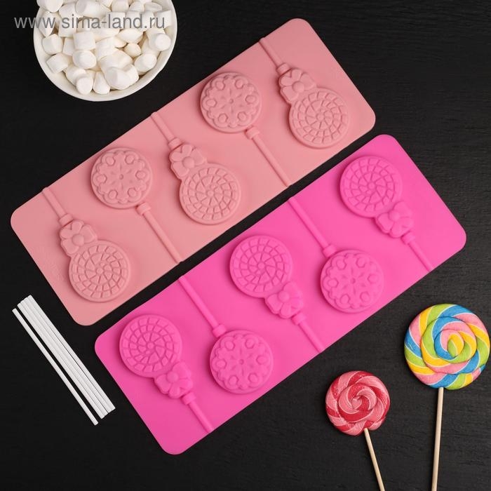 Форма для леденцов Доляна «Влюблённость», силикон, 9,5×24×1 см, 6 ячеек (4,2×3,3 см), с палочками, цвет МИКС