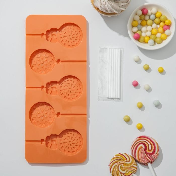 Форма для леденцов Доляна «Улыбка», силикон, 25×9,5 см, 5 ячеек, с палочками, цвет МИКС