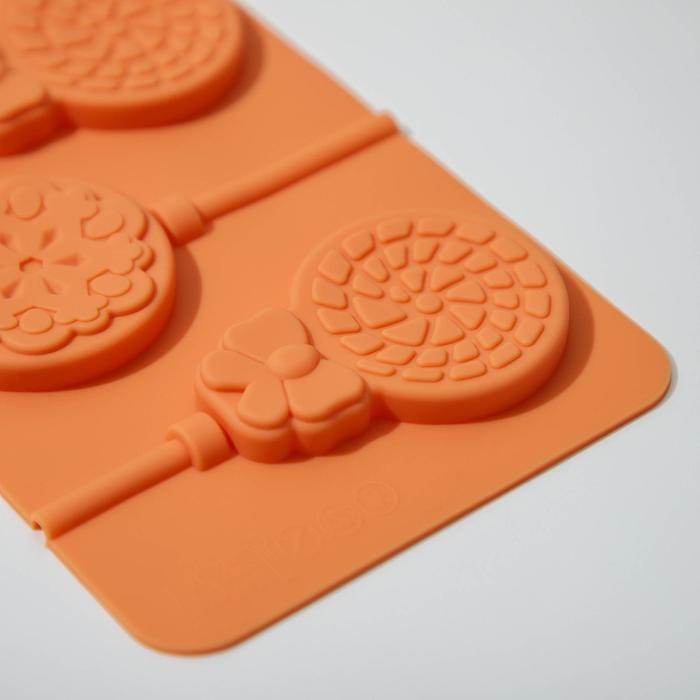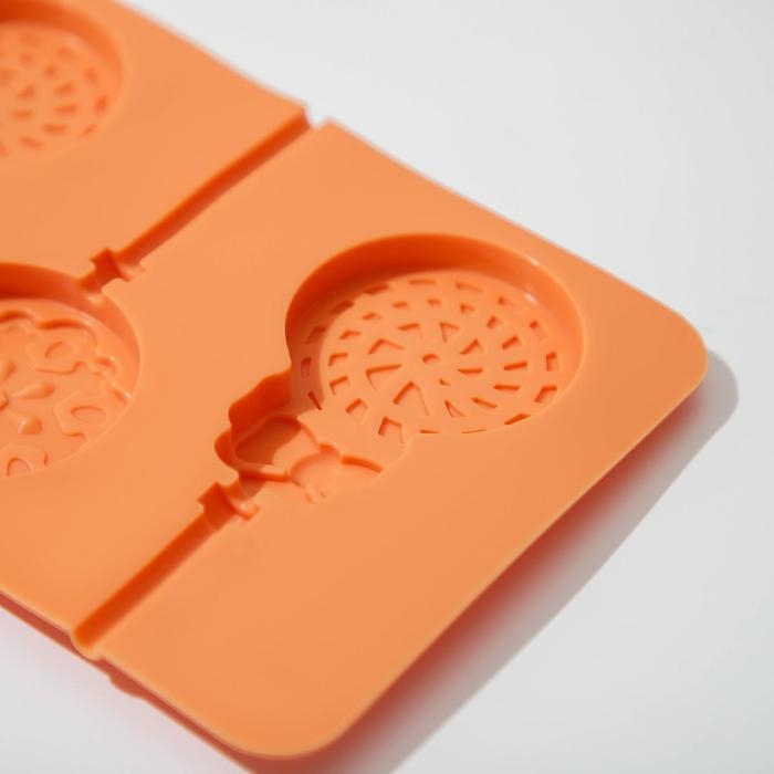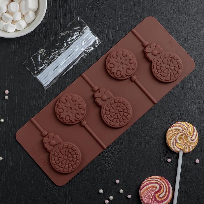 Форма для леденцов Доляна «Поцелуй», силикон, 24×9,4×1,5 см, 6 ячеек (4×2,4 см), с палочками, цвет коричневый