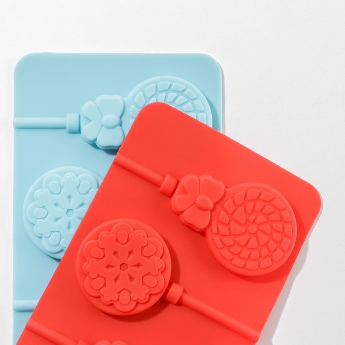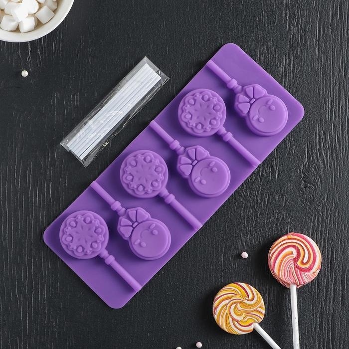 Форма для леденцов новогодняя Доляна «Морозко», силикон, 24×9,5×1,5 см, 6 ячеек (4×4 см), с палочками, цвет МИКС