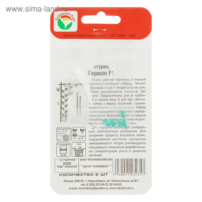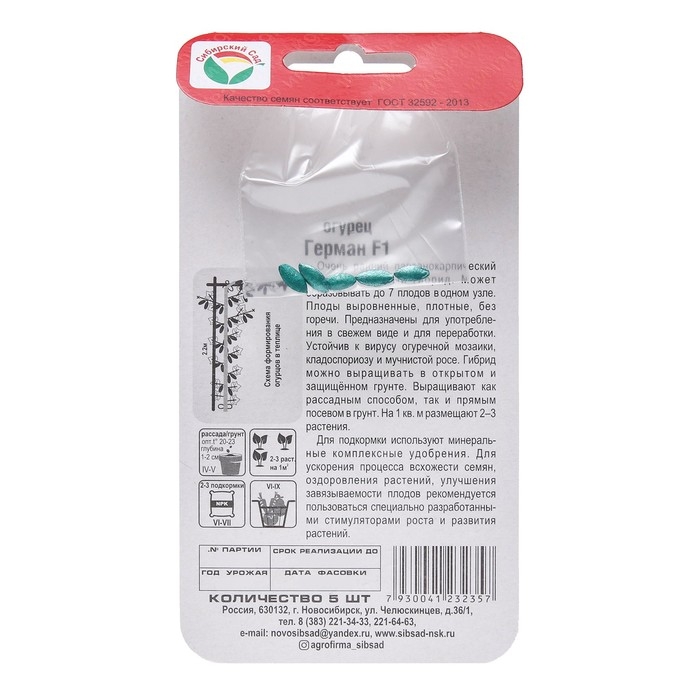 Семена Огурец Герман F1, партенокарпический, 5 шт