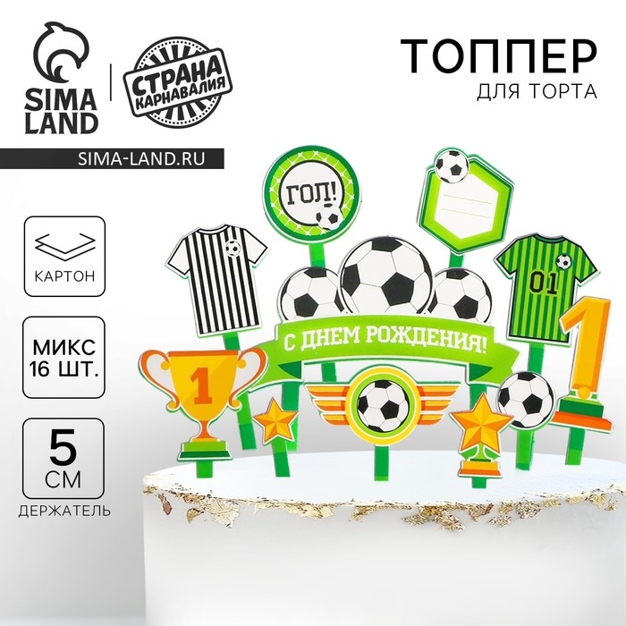 Набор топперов для украшения торта «С днём рождения, футболист»