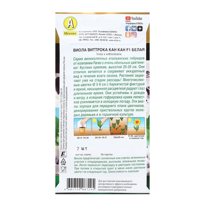 Семена цветов Виола "Кан Кан", F1, белая, Дв, 7 шт.