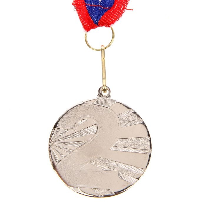 Медаль призовая 013, d= 5 см. 2 место, триколор. Цвет серебро. С лентой