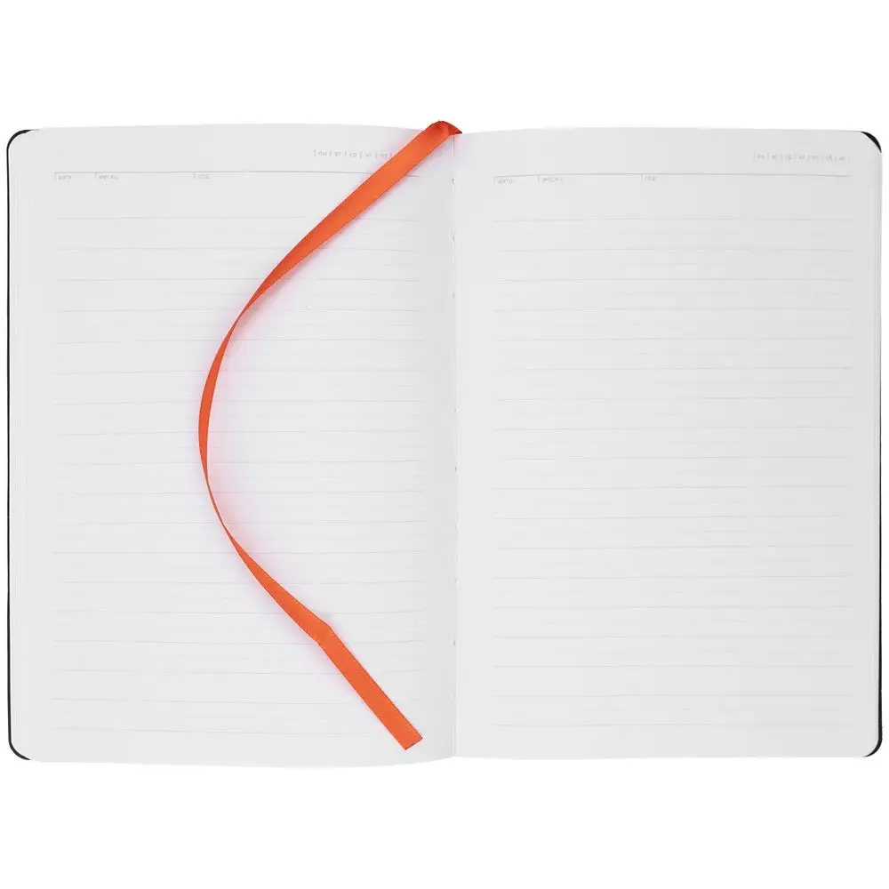Ежедневник с гибкой обложкой, выполнен из материала Latte, оранжевый, дополнен ляссе в цвет обложки.