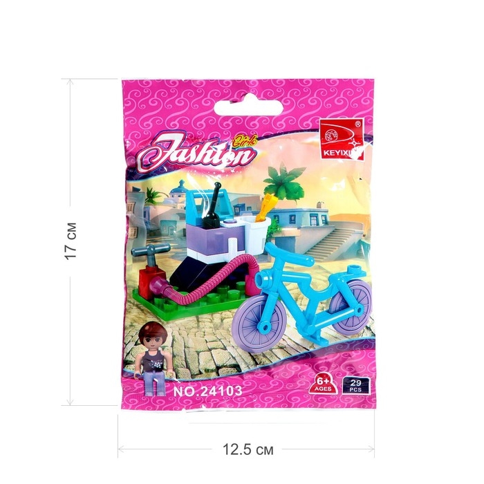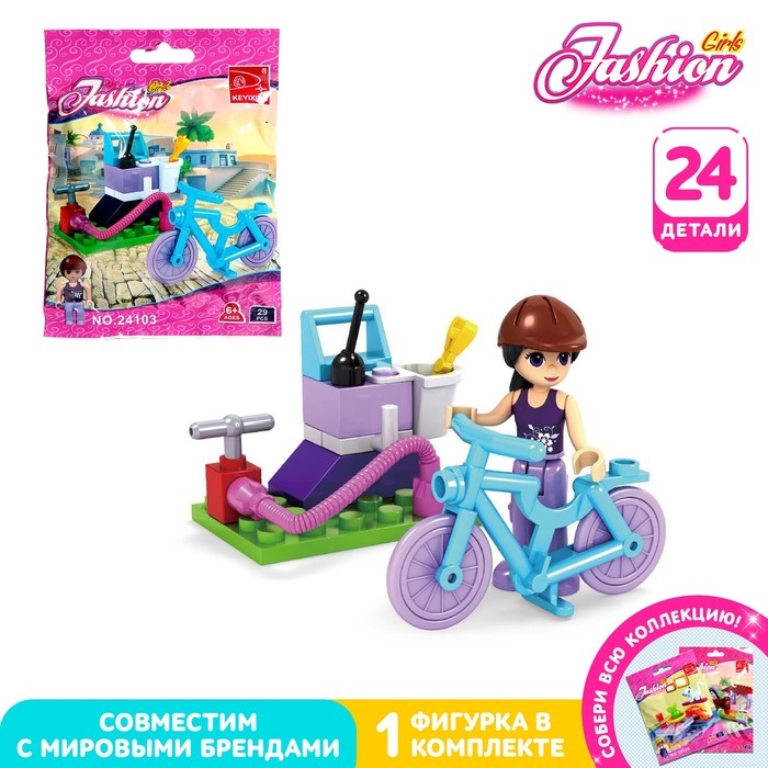 Набор содержит 24 детали и позволяет собрать фигурку девочки, велосипед и сервис. Разнообразные красочные элементы пробудят воображение ребёнка — дочурка придумает множество ярких сюжетов и с удовольствием проведёт время.