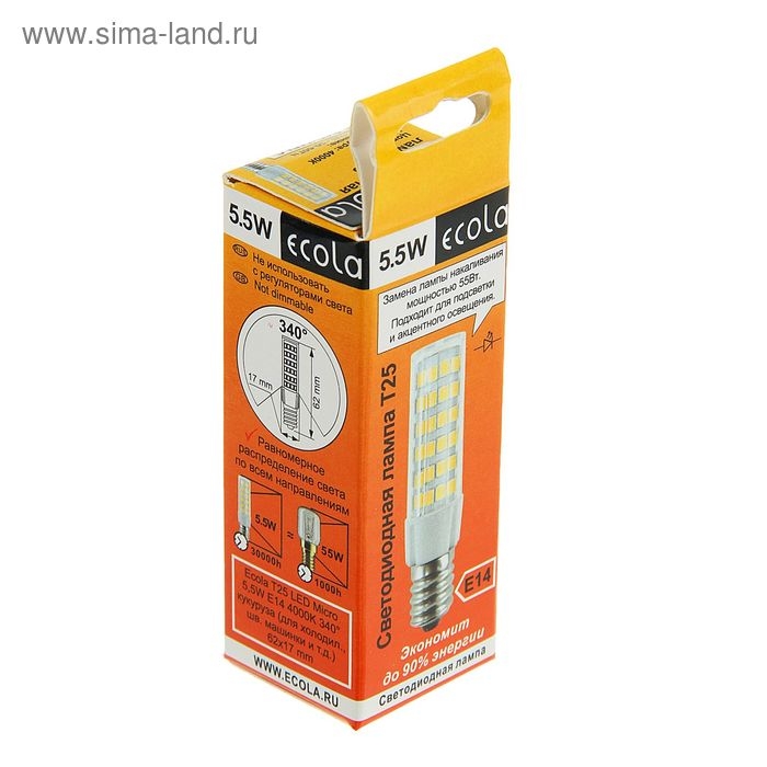 Лампа светодиодная Ecola, T25, E14, 5.5 Вт, 4000 K, 340°, для холодильников и швейных машин