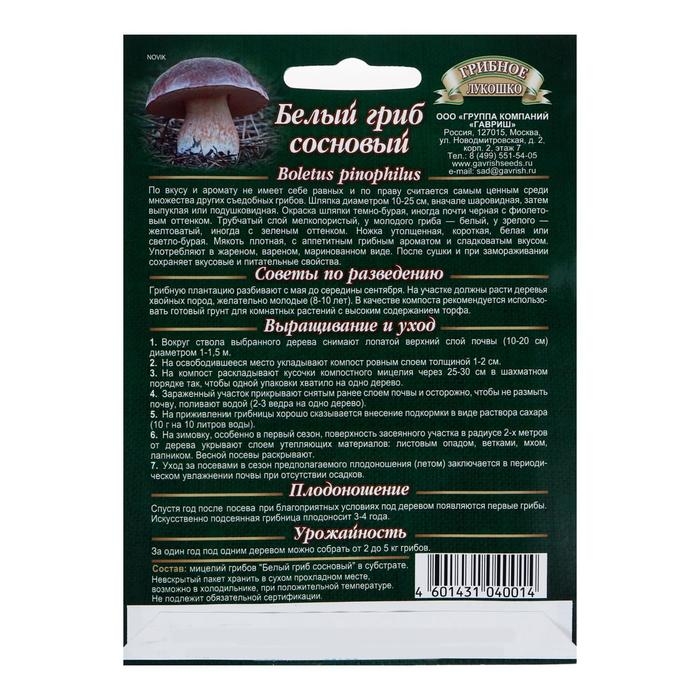 Семена Мицелий "Белый гриб", сосновый на зерновом субстрате, 15 мл